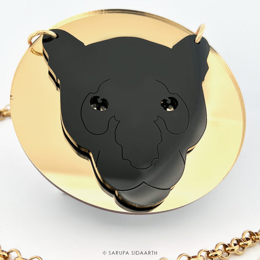 Black Panther Acrylic Statement Necklace in Gold / Silver