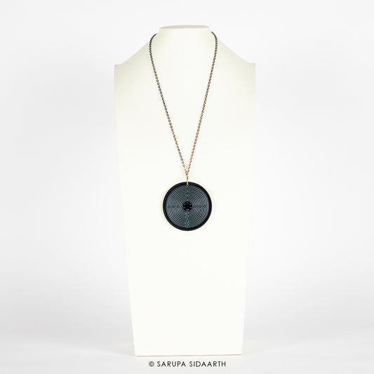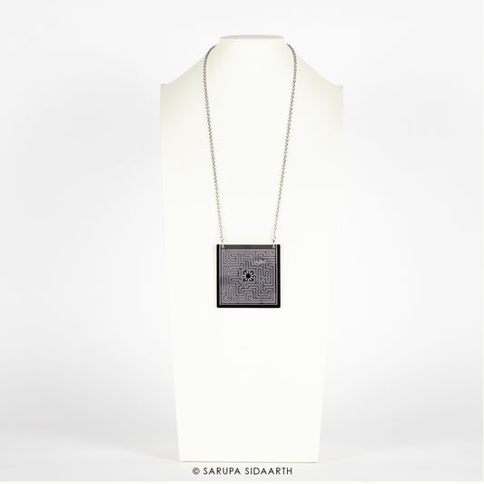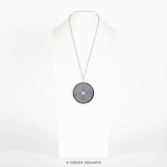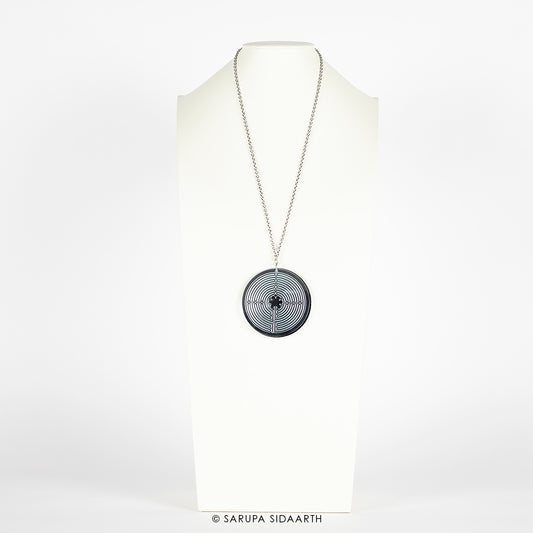 Silver and Black Acrylic Labyrinth Necklace