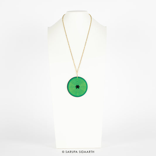 Green Fluorescent and Black Acrylic Labyrinth Necklace