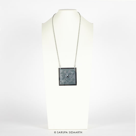 Silver and Black Acrylic Maze Necklace
