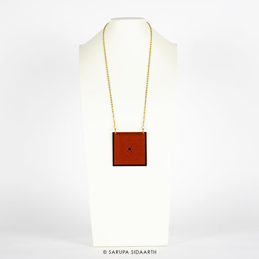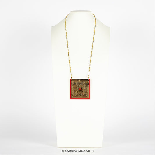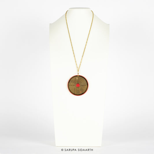 Gold and Red Acrylic Labyrinth Necklace